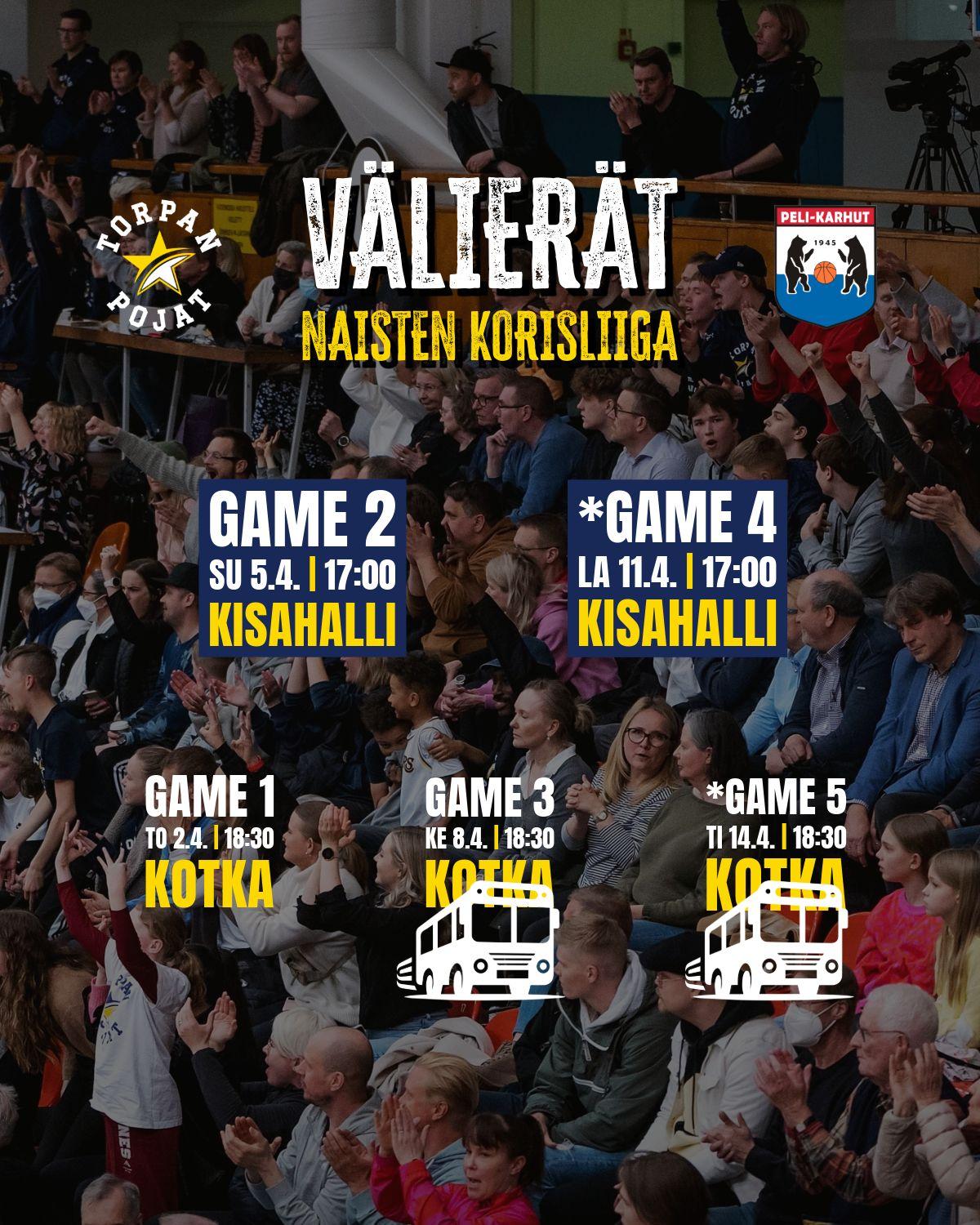 ➡️ Kolmanteen ja tarvittaessa viidenteen otteluun järjestetään fanikuljetus Ventoniemen toimesta!