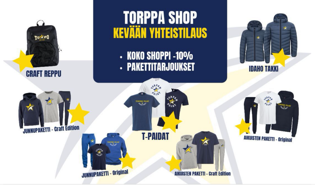 Kevätkauden -yhteistilaus on nyt avattu! Nyt on erinomainen hetki täydentää ToPo-varustusta – tarjolla on normaalia laajempi valikoima fanituotteita sekä useita edullisia pakettidiilejä niin lapsille kuin aikuisille.